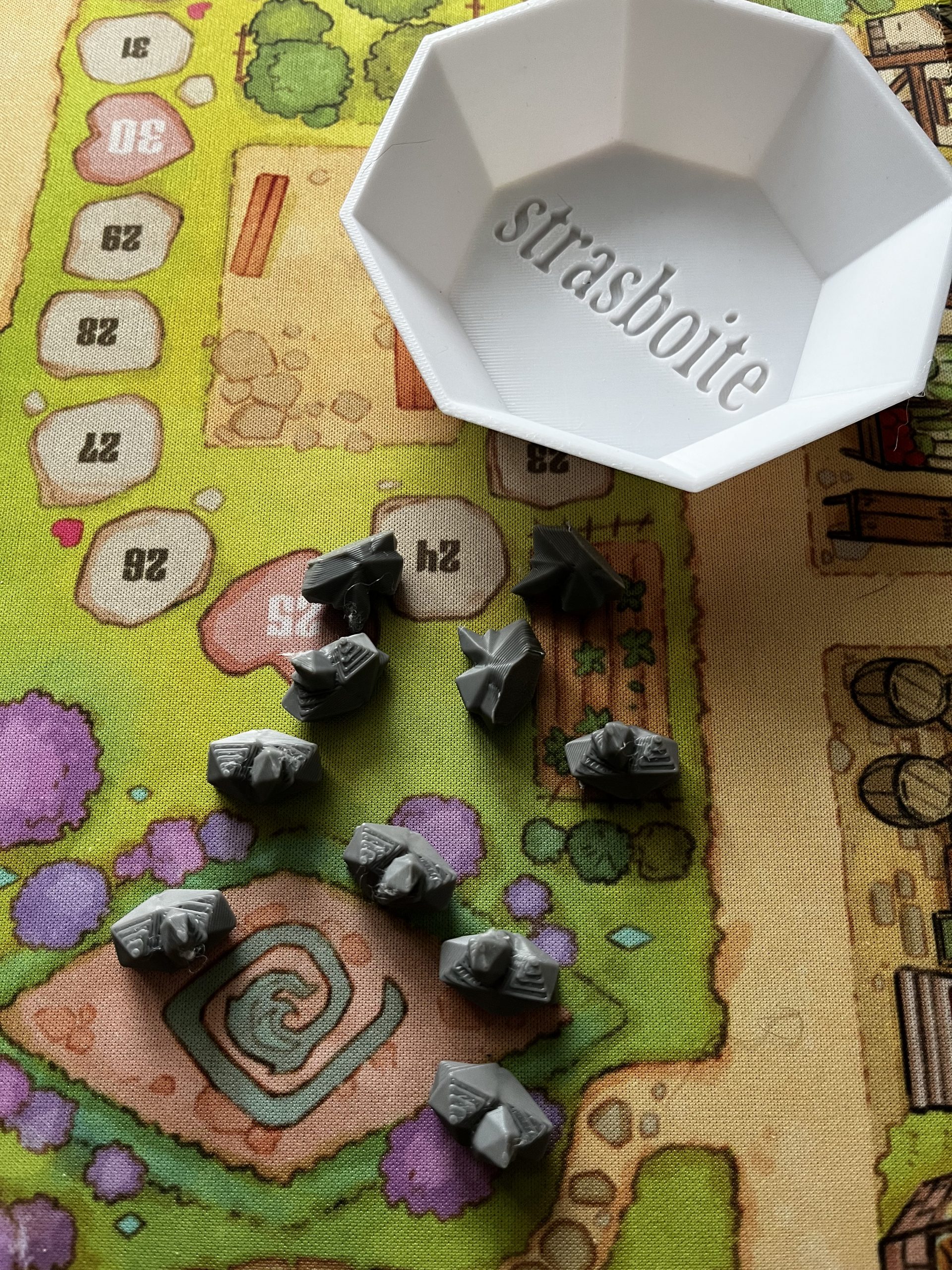 Le design est en 3 dimensions, la ressource est plate sur le dessous pour pouvoir la poser sur vos tables de jeux sans glisser